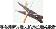 凯弗拉锯齿快利剪 HRC60-62. 刀片以硬度HRC60°~62°高碳钢材质精制,刀口显微硬度高达HV1200。. 刀口采锯齿状设计,有效消除剪切凯弗拉线的滑动。. 手柄为弹性塑胶制成,手柄大,易握持,好操作。. 特别为剪切光纤外层凯弗拉线而打造。