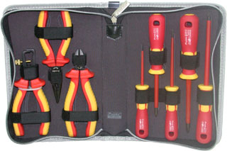 VDE1000V高压绝缘工具组(8件组). 皮包尺寸:255x175x50(mm). 包装方式:白盒+彩标热缩. NOTE:本公司保留更换规格的权力