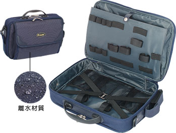 离水多用途四层网袋工具包. 采用600D特级离水尼龙材质,防水效果奇佳,配合防泼水整体设计,不怕雨淋提把、背扣流线一体成型,四周加硬处理,可站立,具耐震设计四层网袋多功能设计,可放置工具、文具、书籍、电脑衣物....等。